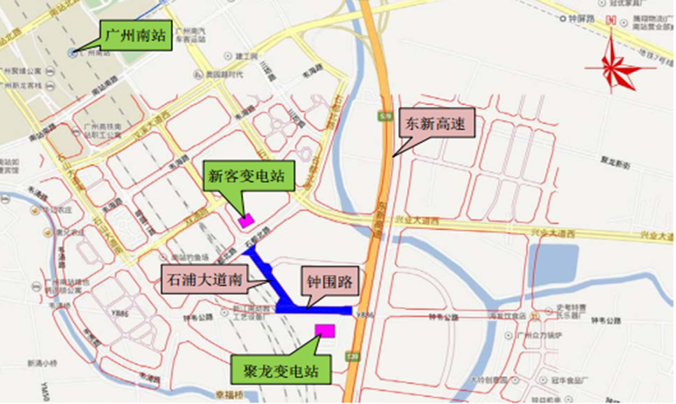 2、项目建设规模:本项目位于广州南站核心区内,包括46条规划市政支路及钟围路、石浦大道南,道路全长约12.6公里,建设9-12孔管道。