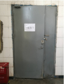 (一)3#冷站首层冰槽南北两扇门防火门长年使用,锁失灵,门扇破损(见下图)。处理方案:拆除两扇破损防火门,安装两扇新防火门框+门扇。
