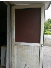 (二)首层仓库一扇钢塑门长年使用,已经无法正常使用(见下图)。处理方案:拆除原破损钢塑门,安装一扇新钢塑门框+门扇。