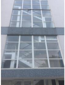 (六)南门楼梯间二层外墙窗玻璃结构胶开裂、剥落。处理方案:将现有开裂结构胶割除,清理干净后采用白色中性硅酮结构胶重新填缝。