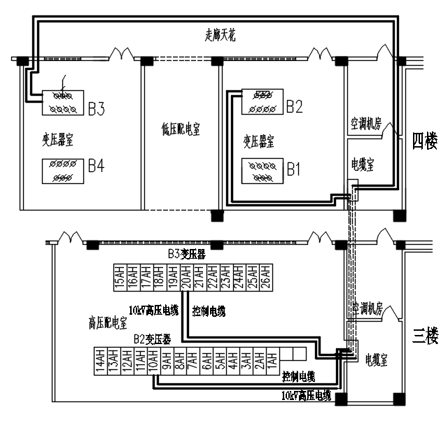 附图1:B2、B3变压器电缆调换前走向图