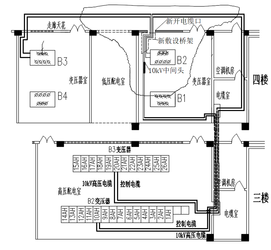 附图2: B2、B3变压器电缆调换后走向图
